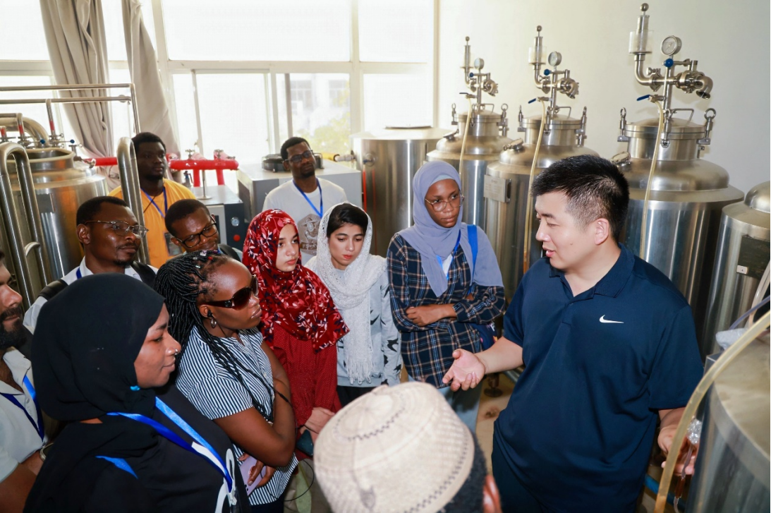 在啤酒酿造工艺中试实验室,留学生们在导师的引导下,了解了啤酒酿造的关键工艺流程,包括麦芽糖化、发酵、过滤、熟化等环节。通过现场的设备展示与数据监控系统演示,大家直观感受到中国高校在传统食品加工领域引入智能化、数字化技术的创新成果。一位来自塞尔维亚的留学生表示:“这与我在家乡见到的传统酿造方式完全不同,中国的技术让酿造过程更加精准、高效。”