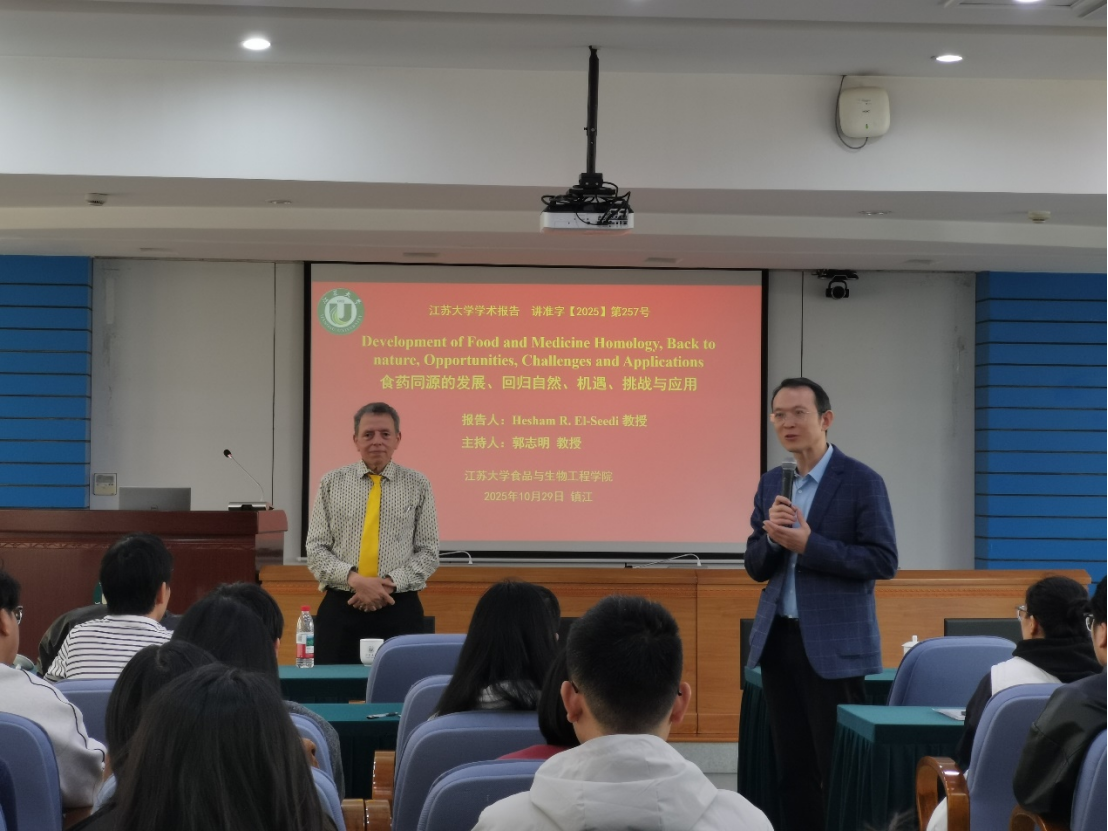 El-Seedi教授长期从事天然产物生物活性物质的合成、分离、结构鉴定及安全性评价研究,曾就职于乌普萨拉大学、瑞典皇家理工学院及斯德哥尔摩大学等多所知名高校,科研成果丰硕,发表学术论文400余篇,涉及《The Lancet》《Scientific Reports》《Journal of Natural Products》《Food Chemistry》等国际权威期刊。其研究方向主要包括食药同源植物化学、天然活性成分分析等领域。在讲座中,El-Seedi教授以“自然”为核心理念,深入阐述了通过跨学科研究推动食品与药物同源性科学发展的重要意义。他系统分析了传统食药同源活性成分的健康功能,结合代谢组学与分子生物学技术,探讨了抗氧化、抗炎及调节肠道菌群等关键机制。El-Seedi教授指出,未来应将绿色化学与人工智能技术相结合,助力食品与健康产品行业的可持续创新与升级。